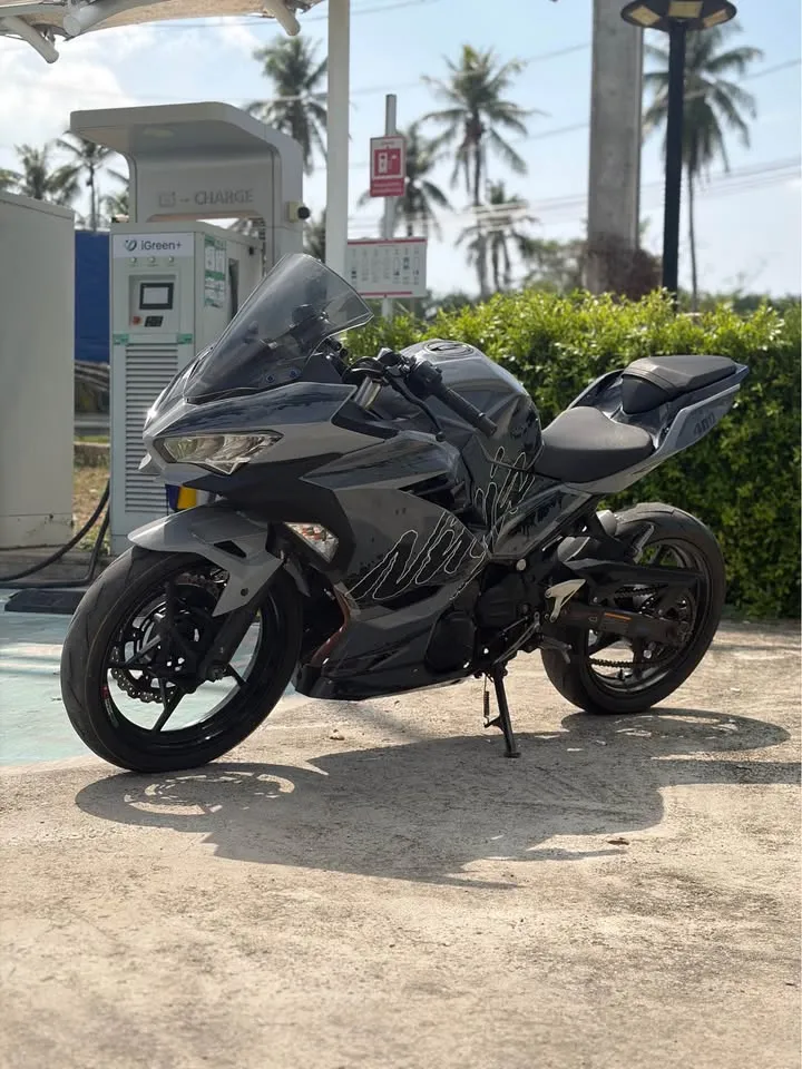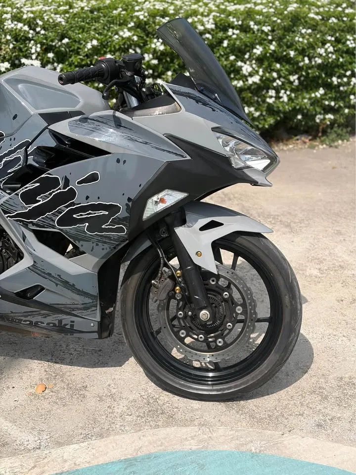 Теперь доступен для продажи! Kawasaki Ninja400 2018 года выпуска • 15 300 км • Полная окраска Lamborghini серого цвета • Индивидуально разработанные наклейки • Выхлопная система Arrow • Отличное состояние • Недавно обслужен • Отлично едет,非常 чистый и хорошо обслуженный • Доставка по всей стране • Документы готовы к передаче • Пхукет