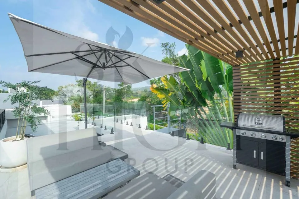 🏡 莱延和邦涛海滩附近的私人泳池别墅出租 Direct from the owner | Move-in ready 📍 Layan Lucky Villas Phase 1 💰 150,000 THB / month (6–12 month contract) 📅 Available from April 7 ✨ Property Highlights • 4 Bedrooms | 4 Bathrooms • Land size 400 sqm • Built-up area 375 sqm with lake-view rooftop terrace • Private swimming pool 8 x 3.8 m • Direct pool access from bedrooms • Fully furnished with modern kitchen 🌿 Rooftop terrace with outdoor furniture & BBQ area overlooking the lake ✔ Pool & garden service twice weekly ✔ High-speed internet ✔ 24/7 security + CCTV ✔ Smart door lock system ✔ Covered parking 🐶 Family friendly | Small dogs allowed